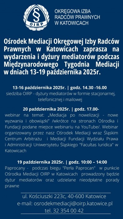 Ośrodek Mediacji Okręgowej Izby Radców Prawnych w Katowicach zachęca do korzystania z mediacji